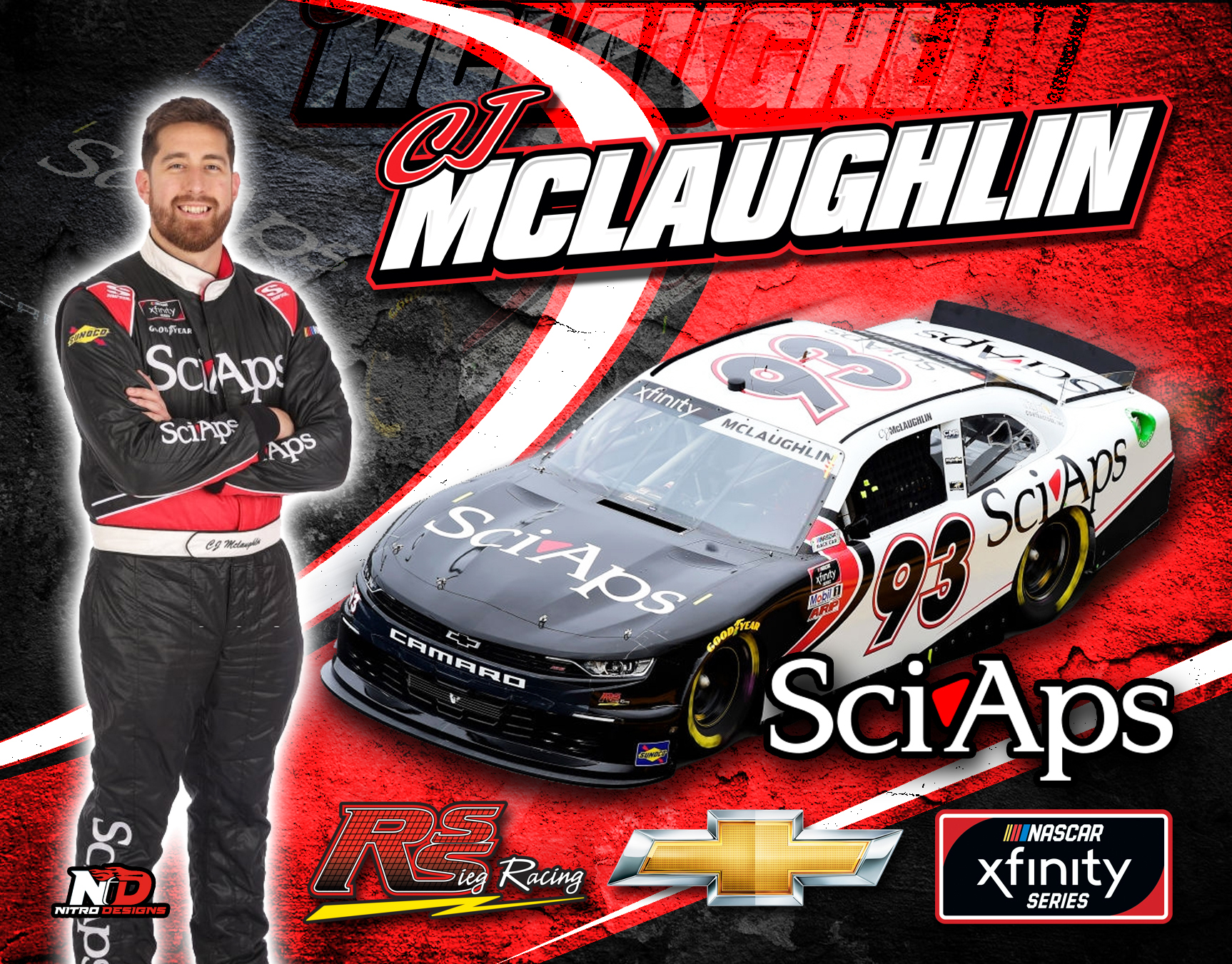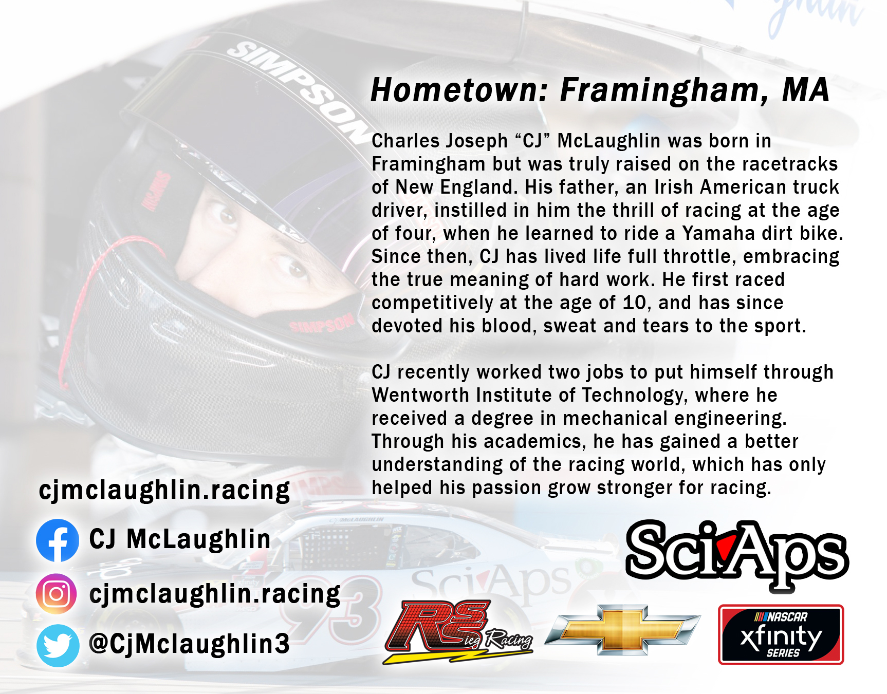 Racing hero cards for CJ McLaughlin for the 2020 season in the NASCAR Xfinity Series.