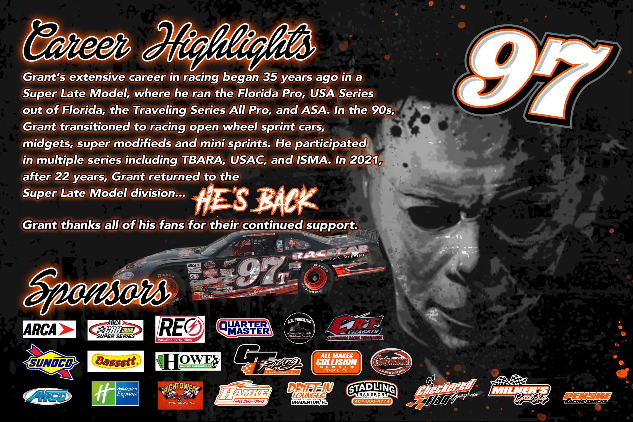 Hero cards for Grant Thormeirer, long time driver out of Florida. Grant wanted to bring a spooky twist to his cards after a hiatus from SLM racing.