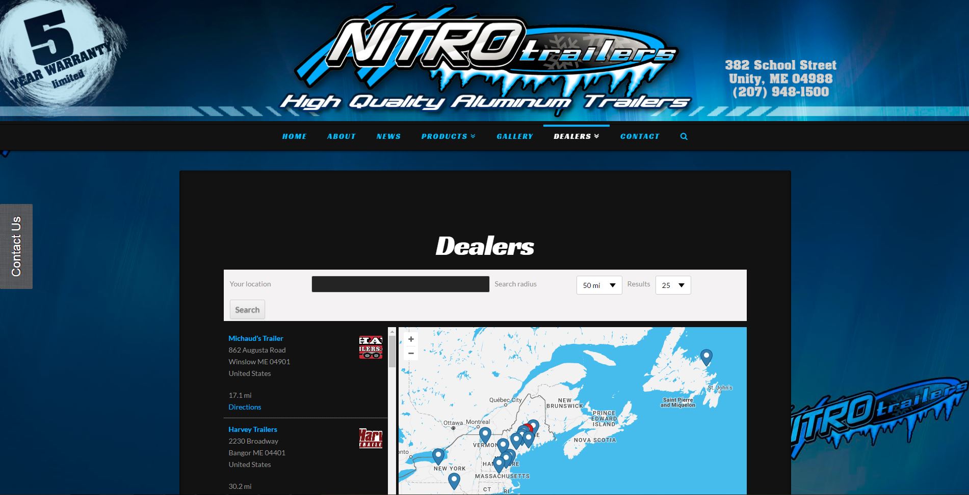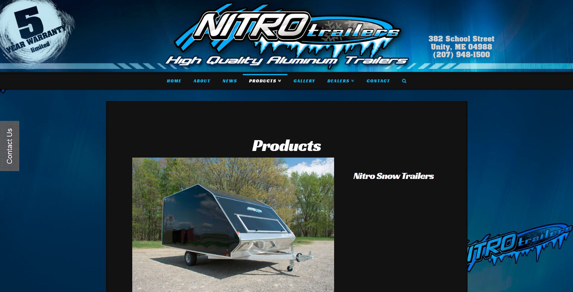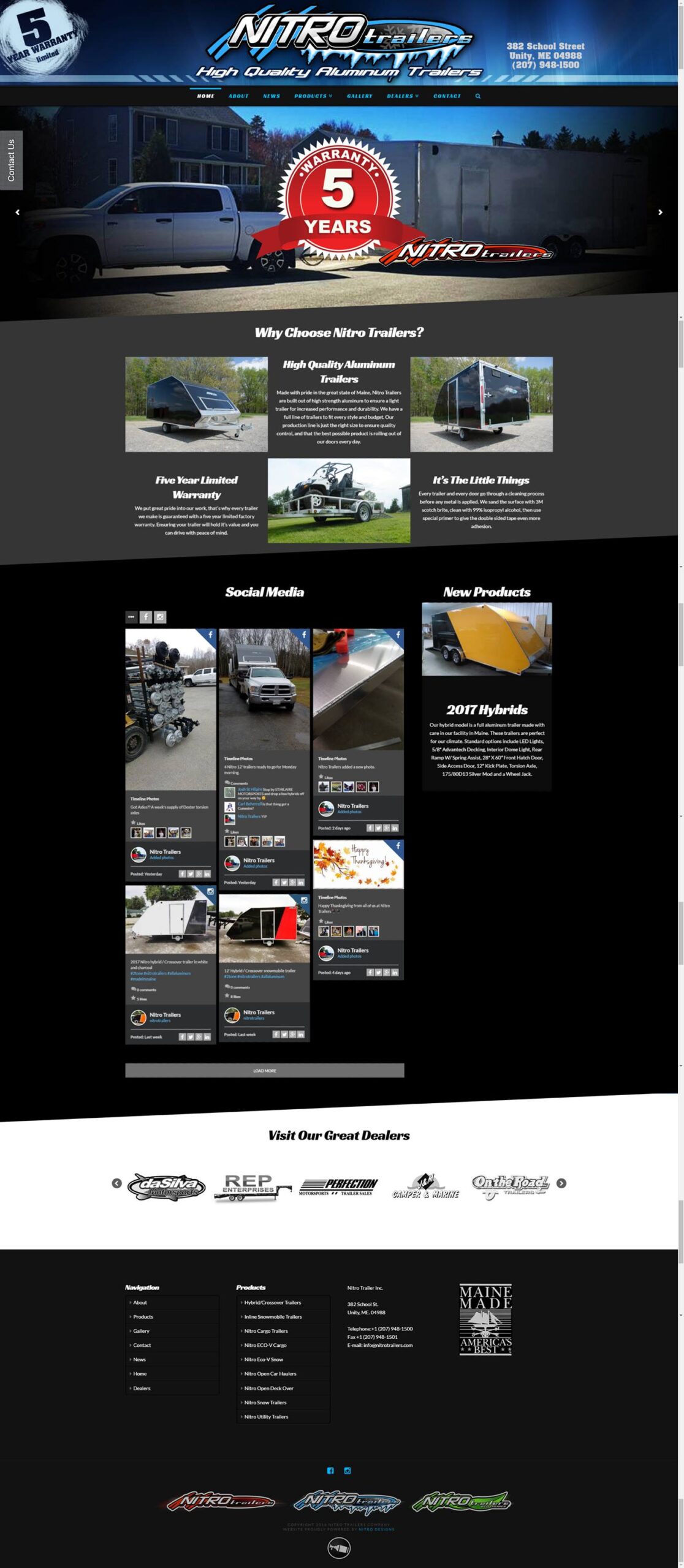 Nitro Trailers Website admin December 13, 2016Websites Website redesign for Nitro Trailers out of Unity, Maine. Features new slider, product lineup, social media scroll, dealer lookup and contact pages. http://www.nitrotrailers.net Nitro Trailers Website Nitro Trailers Website Nitro Trailers Website Share this Project