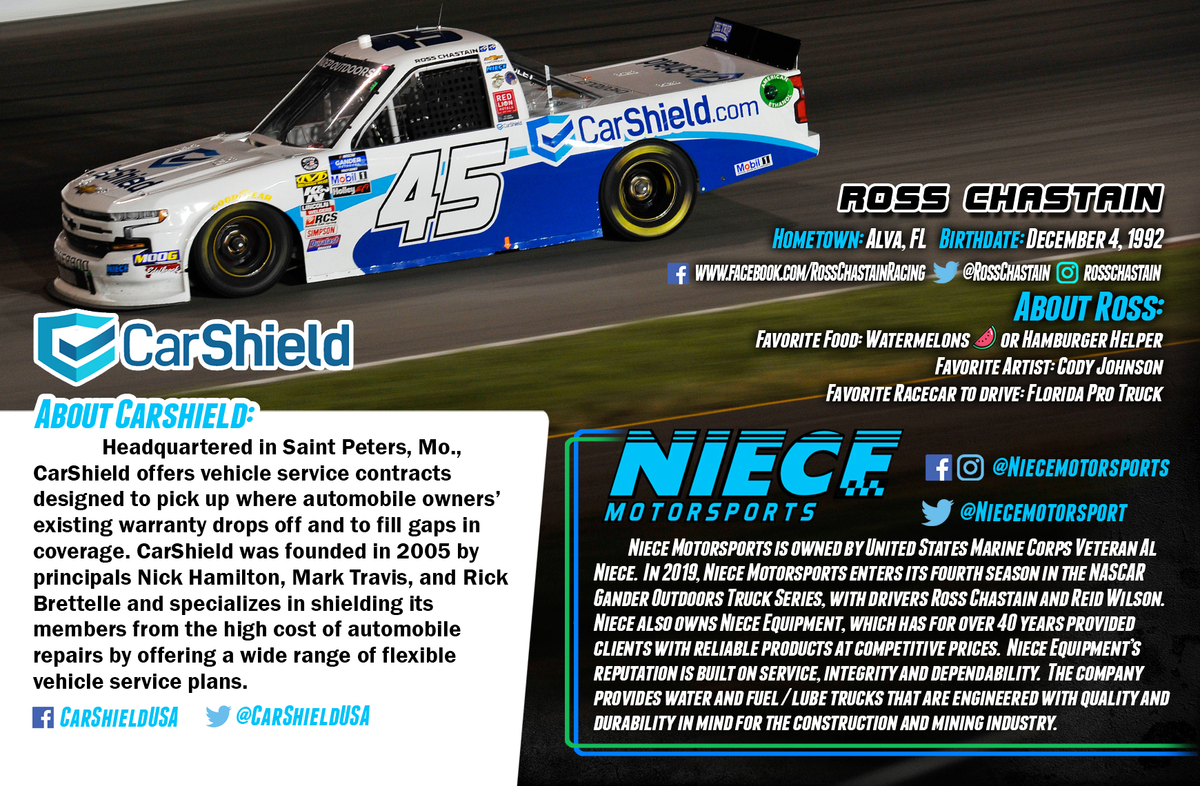 Ross Chastain Hero Cards admin October 30, 2019Hero Cards, Print Design Ross Chastain and Niece Motorsports Hero Cards for the 2019 NASCAR Gander Outdoor Truck Series season. Share this Project